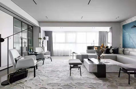 The living room can be decorated with carpets. Carpets can not only add a breath of life to the living room, but also protect the floor. It can also prevent the floor from getting damp when water is sprinkled. However, the carpet is difficult to clean, and families who want to choose a carpet To weigh the pros and cons.