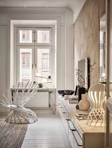 The choice of sofa and chair can choose furniture that is more portable and flexible, so that it is more convenient to clean the floor in the future and change the state of home decoration. And the color of the sofa and chair can be mixed and matched, and the pattern of the pillow can also be used as an embellishment.