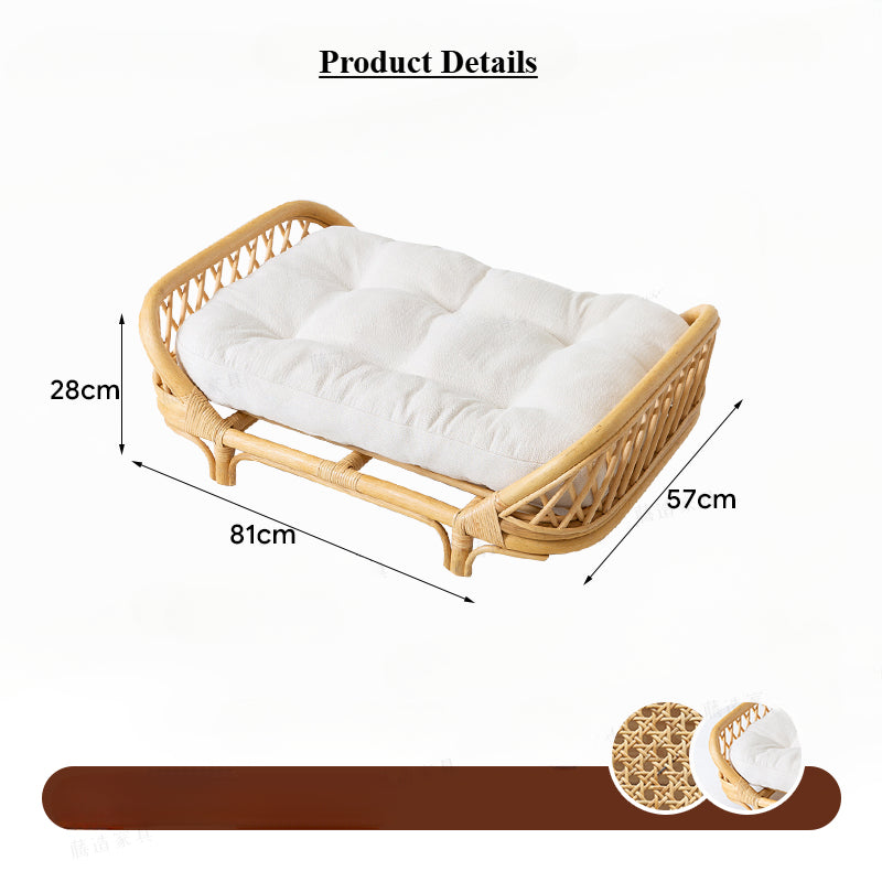 Year-Round Use: Breathable rattan keeps pets cool in summer, while the cushioned base insulates warmth in winter.